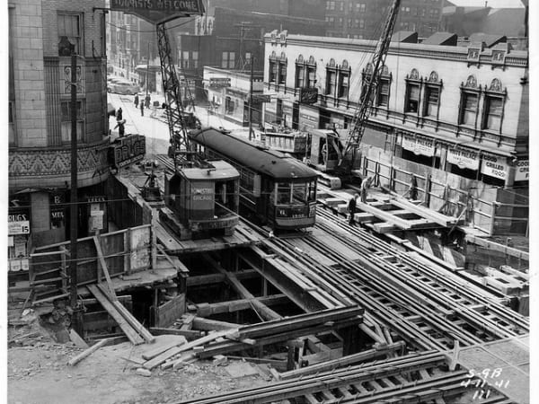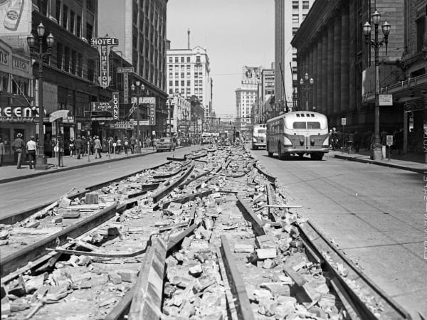 Removal of streetcar tracks on 3rd. Ave. Seattle 1943 - Seattle Muni Archives - Flickr