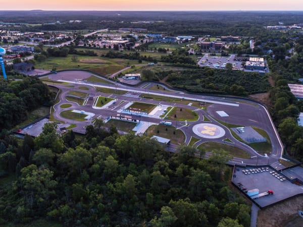 Mcity is the world's first full-scale simulated urban environment designed expressly for testing the performance and safety of connected, automated, and autonomous vehicles under controlled and realistic road conditions. It is a 32-acre outdoor laboratory for advanced mobility systems that includes network of roads with intersections, traffic signs and signals, streetlights, building facades, sidewalks and construction obstacles.