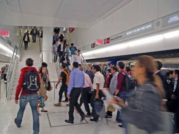 The state-of-the-art World Trade Center Transportation Hub, when completed in 2015, will serve over 200,000 daily commuters and millions of annual visitors from around the world. At approximately 800,000 square feet, the Hub, which features a wing-like "Oculus” design, will connect visitors to 11 different subway lines, the Port Authority Trans-Hudson (PATH) rail system and Battery Park City Ferry Terminal.