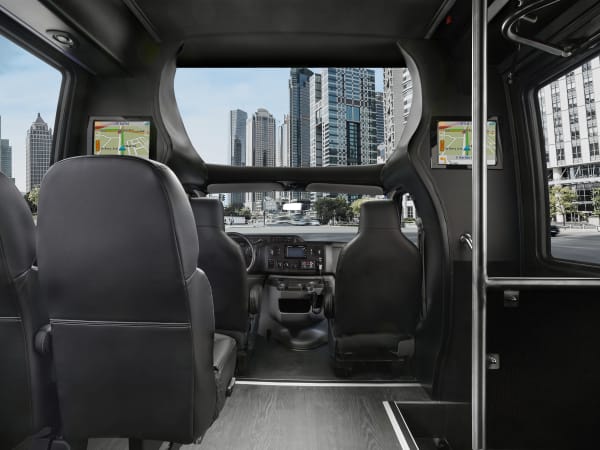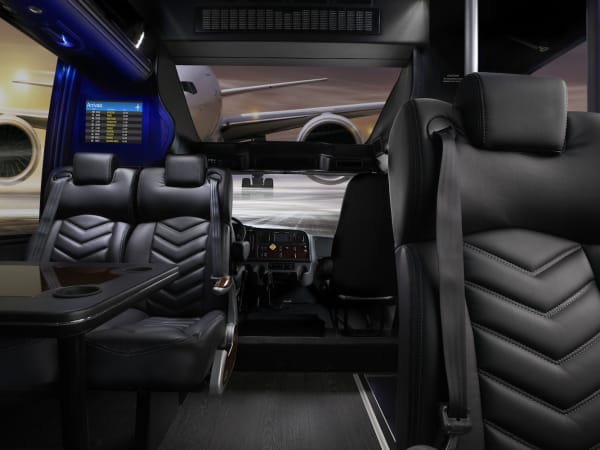 The Grech Motors Sprinter shuttle has a 13-passenger capacity. Fitments include wooden floors and leather seats with seatbelts. The shuttle is available in eight floorplans designed to meet the fleet’s specific needs whether it’s as an employee or client shuttle or an executive’s mobile office.