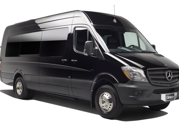 The Grech Motors Sprinter shuttle has a 13-passenger capacity, and is also available in limousine and mobile office configurations. Based on a 3500 model, the Grech Motors Sprinter is powered by a 6-cylinder diesel, and comes with a limited 4-year/50,000-mile warranty, and a structural 5-year/100,000-mile warranty.