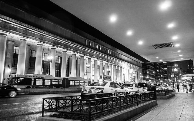 A glimpse of Chicago's Union Station, the third busiest rail station in the U.S. after New York's Grand Central and Penn Station. It is the city's primary terminal for commuter trains (Amtrak and Metra).