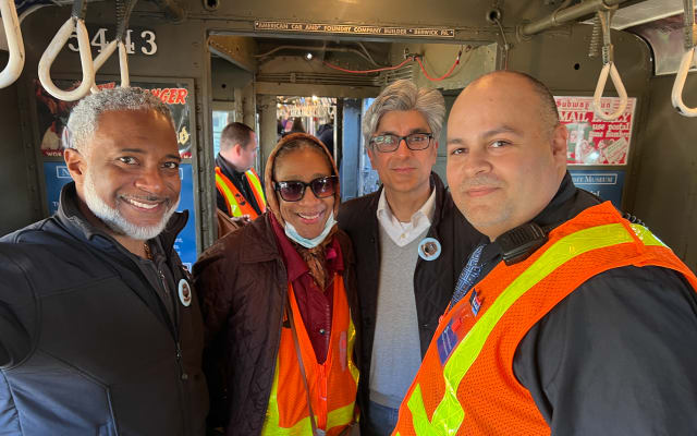 The MTA authorized vintage train rides on historic Lo-V subway cars from 1917 in celebration of the anniversary. These rides retraced the original route of New York's first subway line including the rarely seen Old City Hall Station.