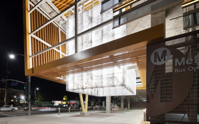 LA Metro's new Division 13 facility, designed by RNL, serves as a bus maintenance, operations and service facility with a multi-level parking garage that accommodates 200 CNG buses, fueling equipment, transportation offices and support areas.