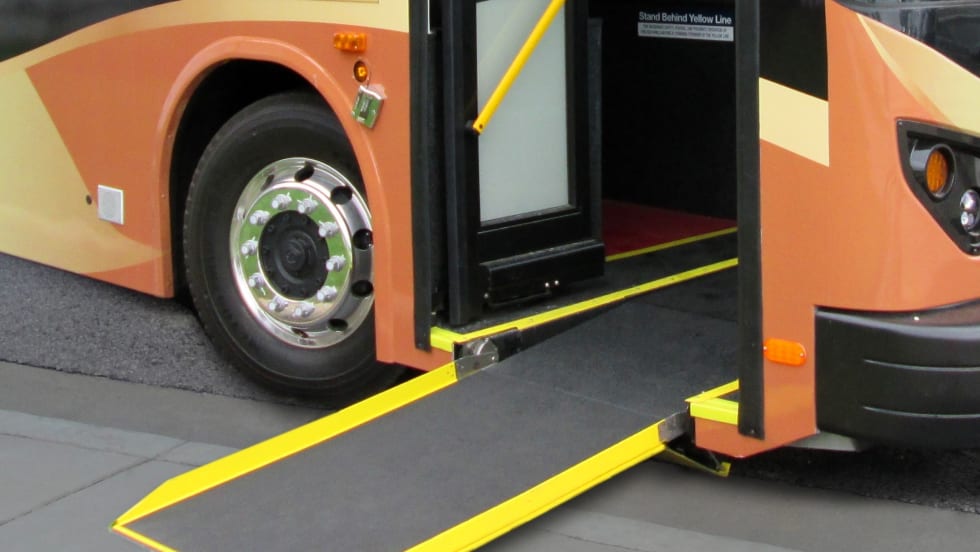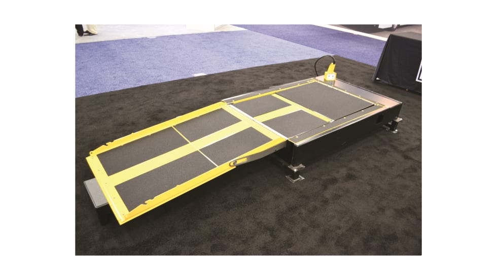 Ricon's unique, passenger-access ramp for transit buses, the Ricon FoldOver Ramp, features an nnovative design, which automatically levels the ramp platform regardless of bus stop conditions.