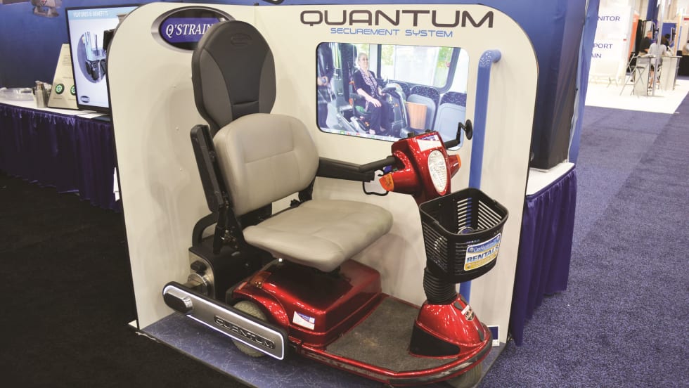 Q'Straint’s Quantum automatic rear-facing wheelchair securement station is designed to international standards, built with transportation industry-standard technologies and is ideal for both new fleet or retrofit applications, according to the company. Beyond safety and durability, the Quantum was also designed with aesthetics in mind: the Quantum's appearance is unimposing and approachable, making it a thoughtful addition to any modern bus.