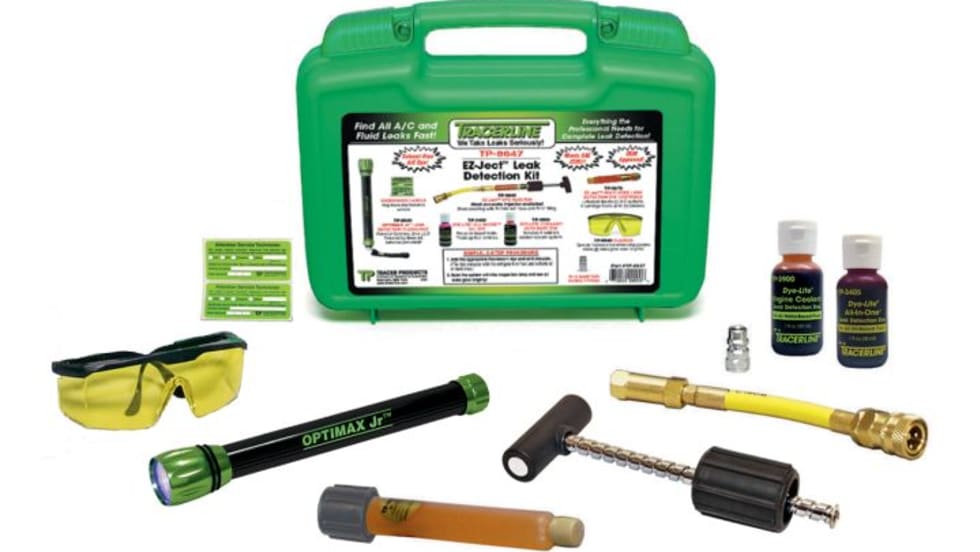 The TP-8647 EZ-Ject A/C and Fluid Kit allows technicians to find air conditioning and fluid leaks, even those in cramped underhood areas.