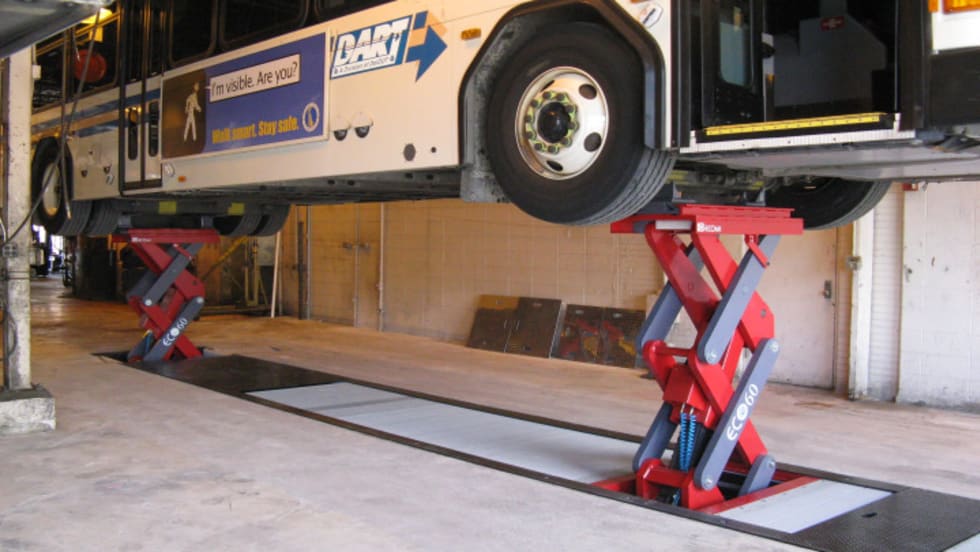 For years, the heavy duty vehicle lift market was looking for a reliable, hydraulic, ultra-shallow in-ground lift that did not leak; had no high power electricity in the pit; had very low oil volume and offered the safety protection of synchronized motion. At last, Stertil Koni managed to incorporate all four demands in one lift — the ECO series scissors lift.