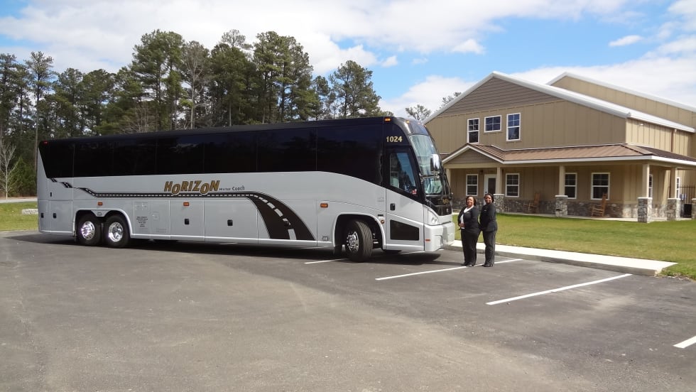 Horizon Motor Coach’s new J4500 features extras like leather-trimmed seats and wood-grain accents, as well as a wheelchair lift so the company can be proactive about ADA compliance.
