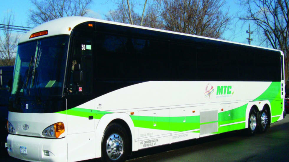 Passenger amenities on MTC Limousine's new coaches include plush seats with overhead reading lights, individual airflow controls, aircraft quality enclosed overhead storage for luggage, and a state-of-the-art entertainment system with six flat-screen monitors.