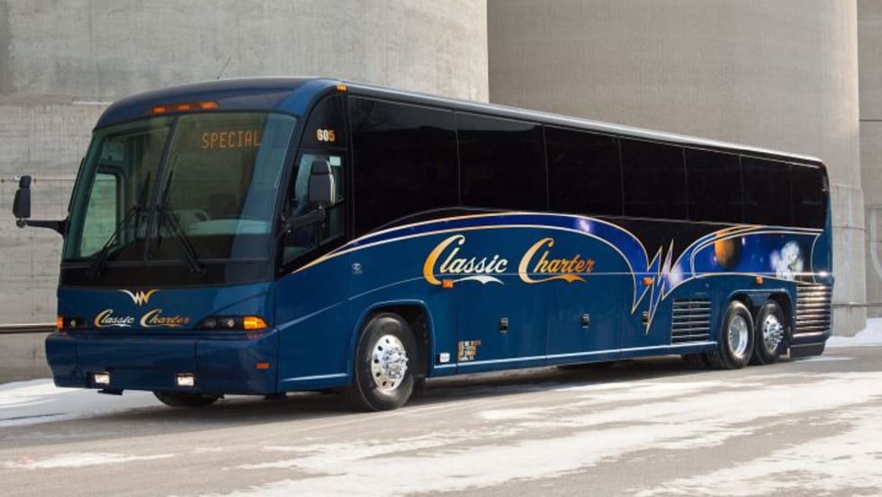 Visalia, Calif.-based Classic Charter’s new coach is equipped with a Detroit Diesel engine and Allison transmission, and features 110-volt outlets and a state-of-the-art entertainment system with 15-inch video monitors.