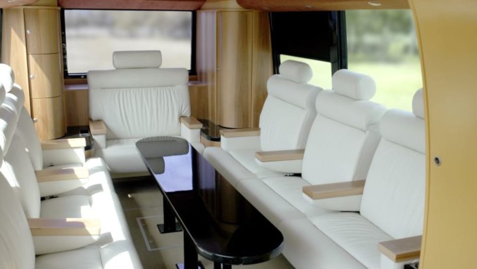 The S 411 HD is the smallest vehicle in the new TopClass 400 line, and features VIP interior amenities as well as Front Collision Guard, adaptive cruise control with Active Brake Assist and Lane-Keeping Assist.