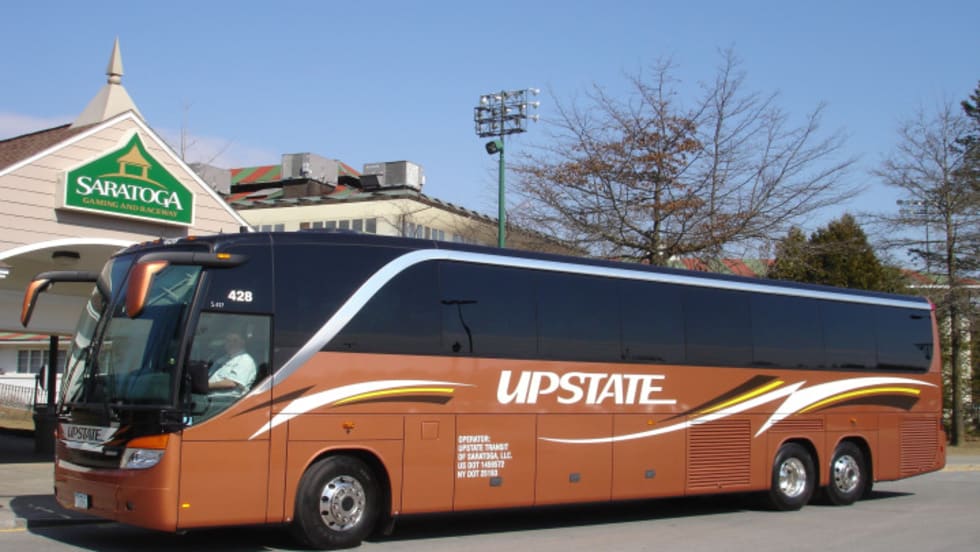 Upstate Transit of Saratoga LLC's new Sahara Metallic coach is equipped with a Detroit Diesel Series 60 EPA 2007 engine and an Allison B500R transmission.