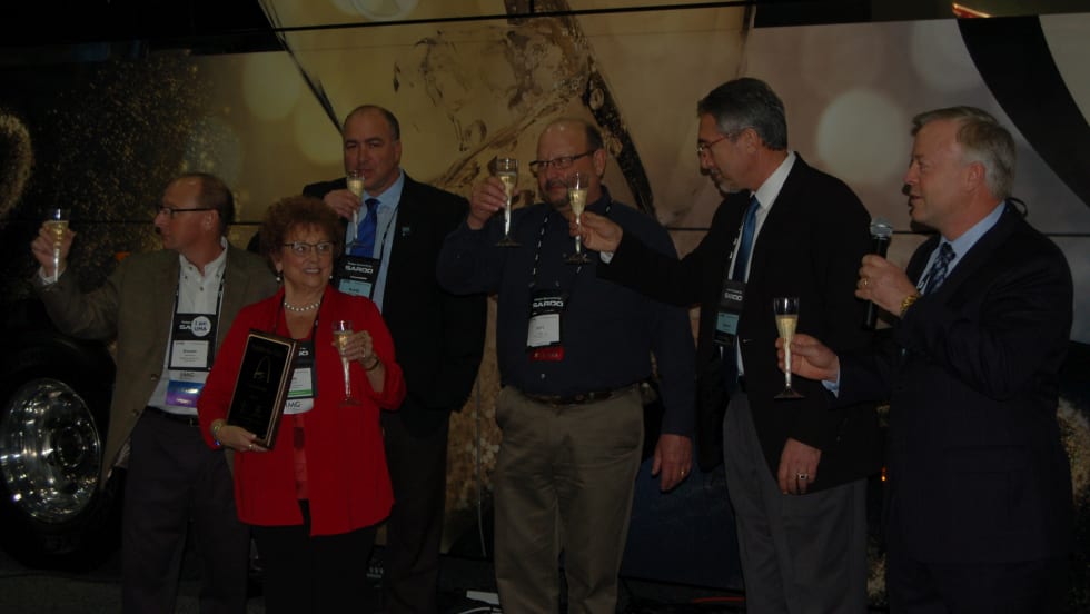 New coach features Amerex fire suppression system and Smartire tire pressure monitoring system.