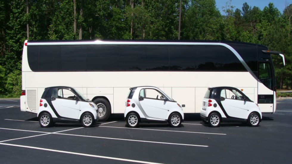 The two coaches feature rear windows and satellite television, back-up cameras for safety, along with auto-retract seat backs and leather-wrapped steering wheels.