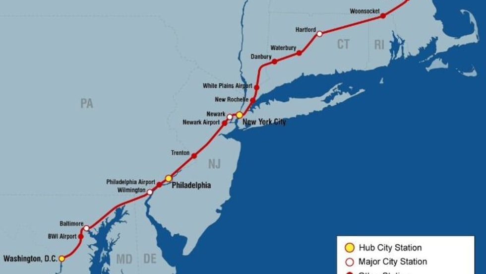 Per an AECOM report, trains would operate at up to 220 miles per hour on a new, dedicated, two-track corridor with a trip time of just under three hours and 30 minutes between Washington and Boston, approximately half the current schedule.