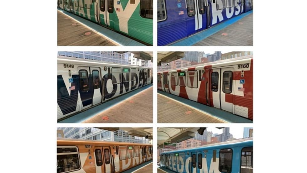 Eight of the railcars are fully wrapped in artwork from Chicago-based artist team Nick Cave and Bob Faust with the intent of engaging and connecting riders as the city reopens.