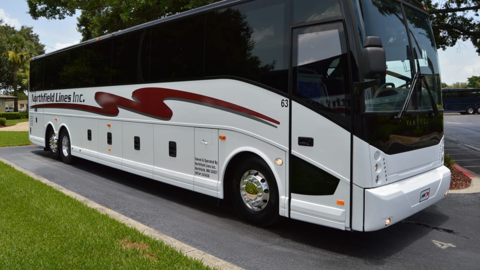 New coaches feature three-point seatbelts, backup camera, lane departure warning, antilock brakes and Smartwave Tire Pressure Monitoring.