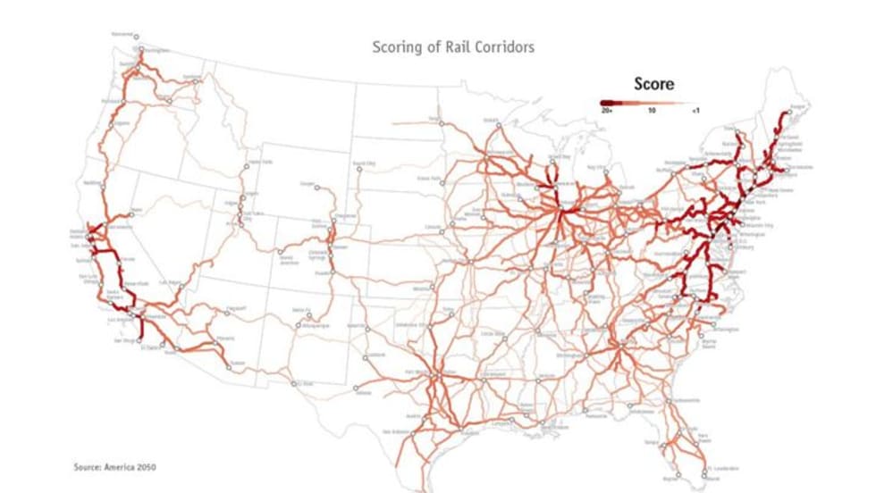 Corridors connecting populous regions with large job centers, rail transit networks, and existing air markets were found to have the greatest potential to attract ridership.