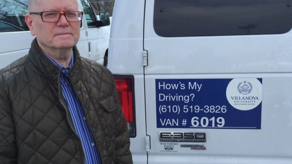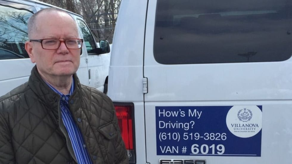 In his new role, Jerry Rineer works with Villanova students who have mobility issues, providing support for them as they make their way across the 254-acre campus. The private university, which has a total enrollment of about 10,700, has a large fleet of vans and other vehicles to serve its students.