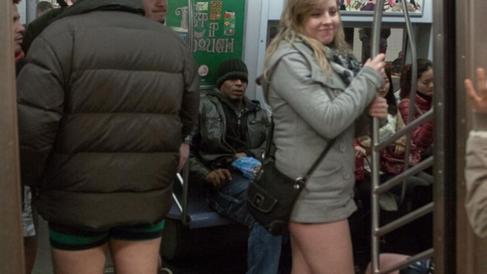 For one day each January, subway trains in cities across the world are filled with throngs of riders shedding their pants to add a little humor to the commuters' day.