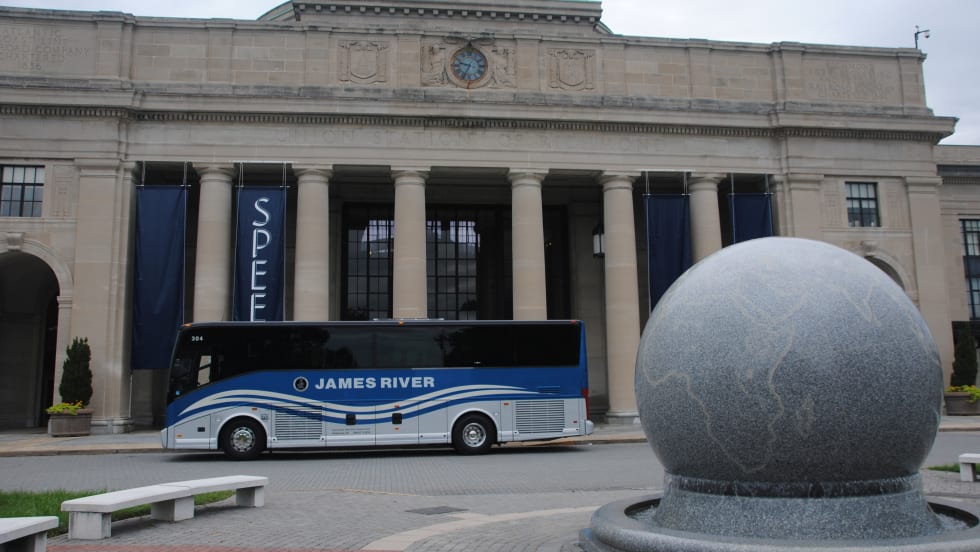 James River's 38-passenger coaches are equipped with Cummins ISL 9L engines driving through Allison B500 transmissions, and have REI Elite Entertainment Systems with 15-inch video monitors, as well as 110-volt and USB outlets.
