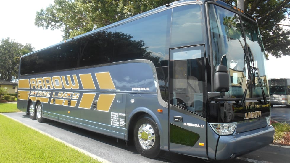 New coaches feature three-point seatbelts, backup camera, lane departure warning, antilock brakes and Smartwave Tire Pressure Monitoring.