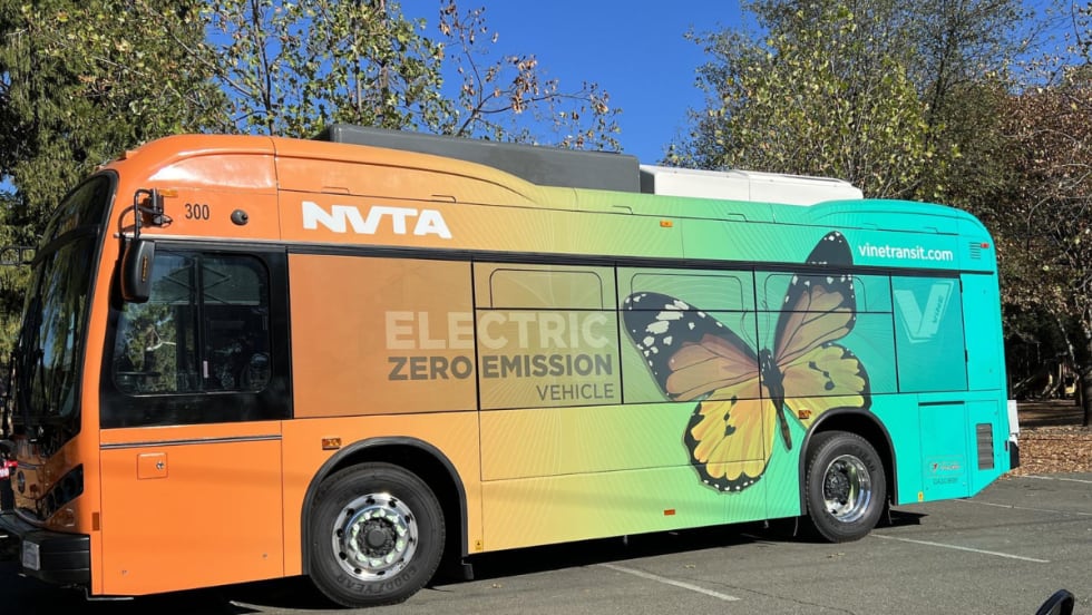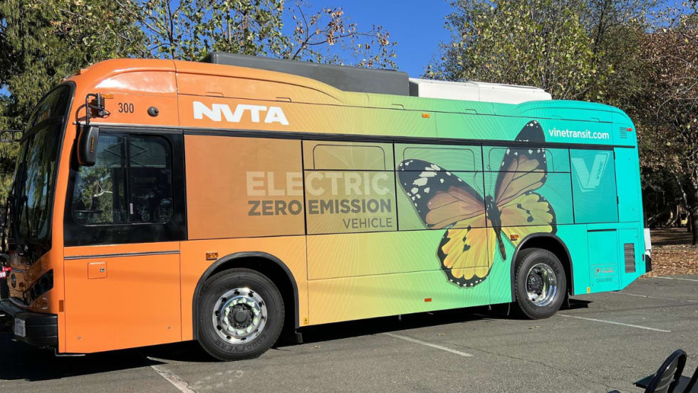 BYD officials and the Napa Valley Transportation Authority held an unveiling of the community’s “butterfly bus."