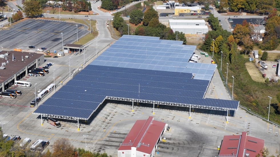Initiatives include using solar bus shelters, operating environmentally-friendly bus and rail vehicles, recycling bus wash water, and incorporating rain gardens at bus rapid transit stations.