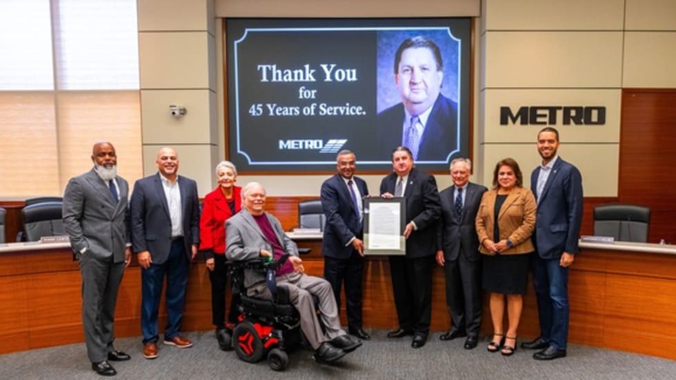 The Board recognized Lambert with a proclamation that highlighted his advocacy for enhanced customer experience, his commitment to public safety, and his contributions that improved public transit throughout the Houston region.