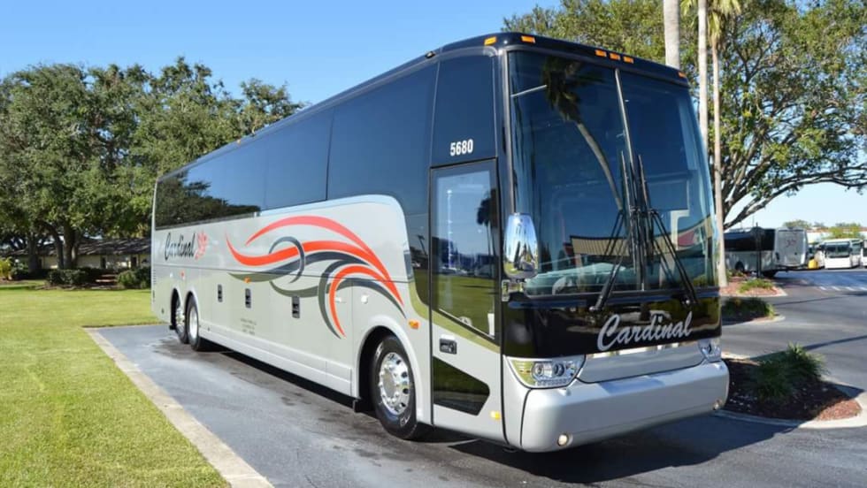 For its newest luxury J4500 coaches, Cline Tours selected the optional 360-degree cameras for a bird’s eye view around the coach and the RGB variable lighting package offering programable interior color options.