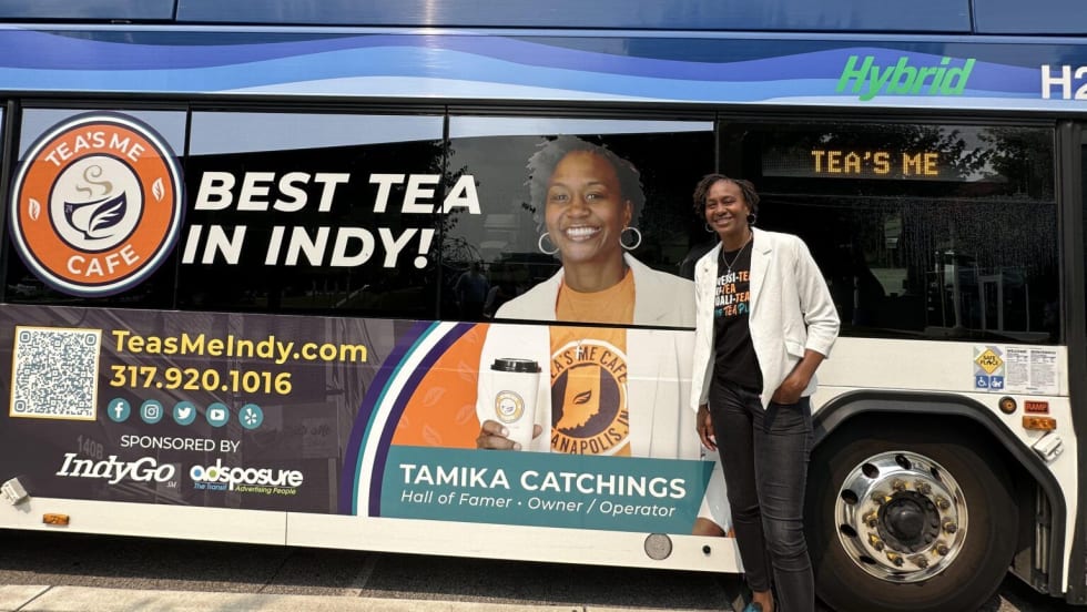 To kick off the new partnership, IndyGo and Adsposure worked with WNBA Hall of Famer and Owner/Operator of Tea’s Me Café, Tamika Catchings, to create the first of the new format ads that will soon be seen throughout Indianapolis on IndyGo buses.