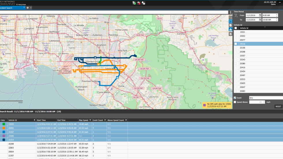 Provides fleet operators with a visual overview of what’s happening on all of their routes, complete with details on recorded events, such as speed, hard brakes, door malfunctions, or impacts.