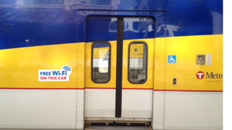 The “cab car” of each train will be marked with graphics inside and out that designate it as the location for free customer Wi-Fi access.