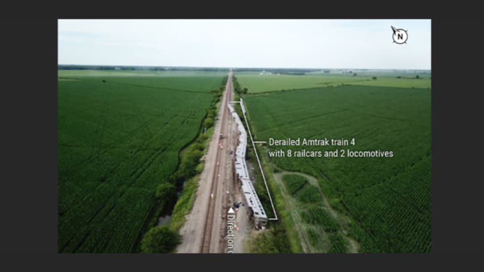 The June 27, 2022, collision occurred when a dump truck crossed over rail tracks without stopping at a stop sign and crossbucks located at the grade crossing.
