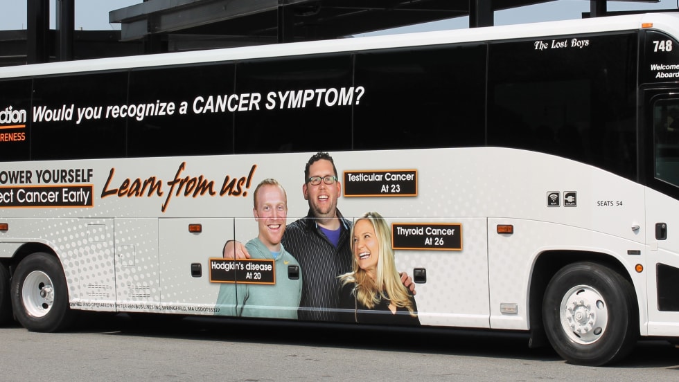 The bus features young adult cancer survivors who are sharing their stories to help others recognize cancer symptoms and why it is important to be an active member of your health care team.