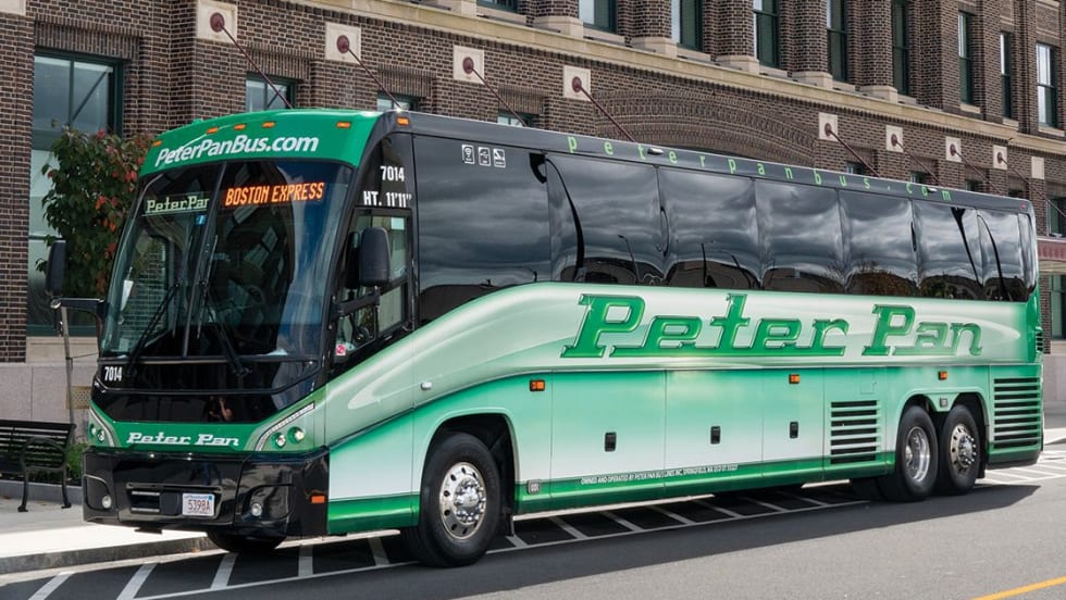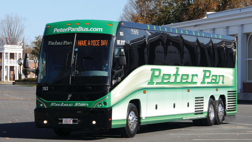 Peter Pan Bus Lines - Springfield, Mass. Peter Pan added new MCI J4500s to its fleet. The coaches have clean-diesel engine technology to help reduce emissions and burn less fuel.