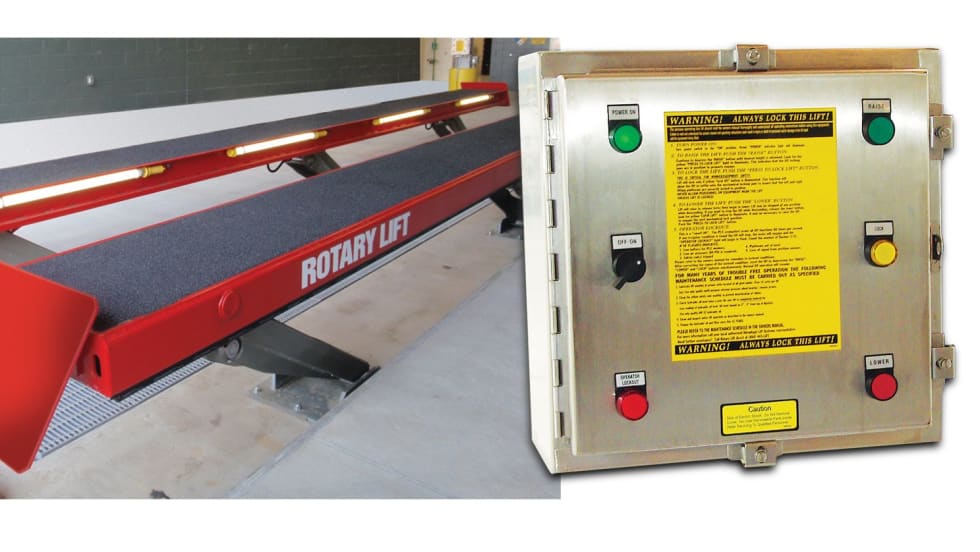 Rotary Lift updated its parallelogram wash bay lift package to maximize bay space and product life. The new lift with wash bay kit is third-party tested by ETL and ALI certified to meet ANSI safety and performance standards.