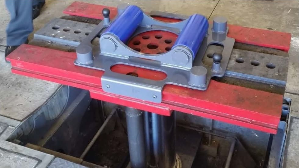 Flush mounting permits heavy-duty vehicles with particularly low ground clearance to easily drive directly onto the SKYLIFT, thus facilitating quick and easy access to a vehicle’s undercarriage.