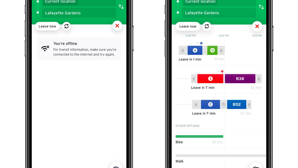 Features multimodal options, including Citi Bike, scooters from JUMP and Spin, as well as ridehail from Uber and Lyft.