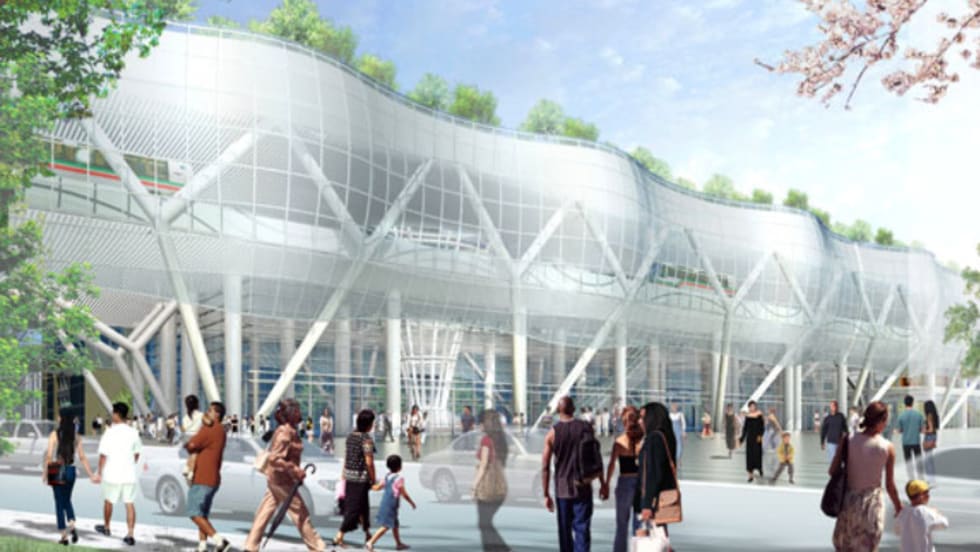 Touted as the "Grand Central of the West", the center will serve more than 100,000 people per day through nine transportation systems once completed in 2014.