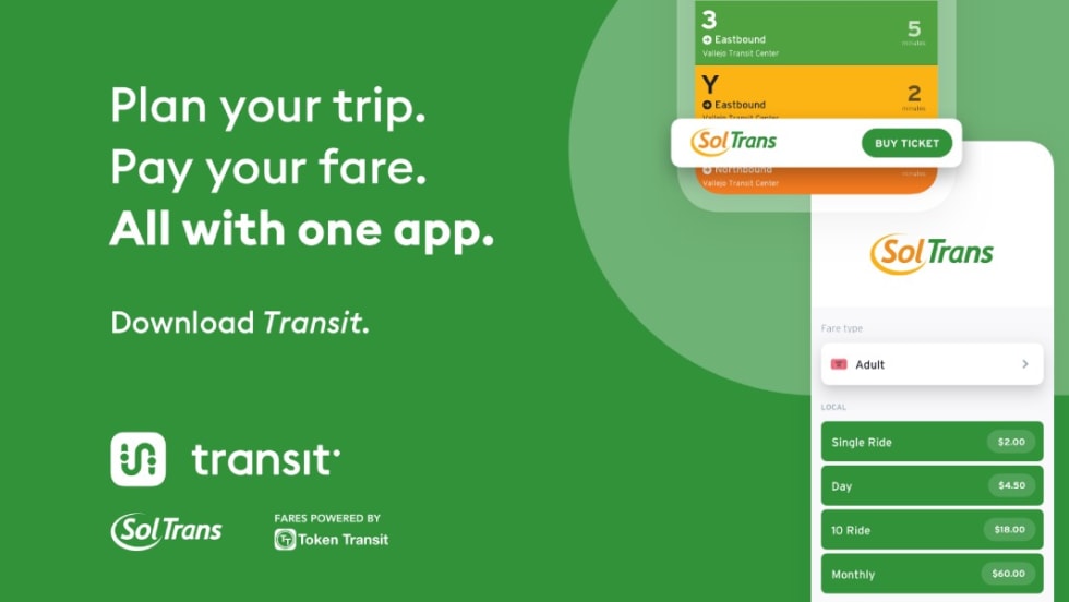 SolTrans riders can see nearby options and departure times and navigate the region, aided by accurate real-time ETAs, trip planning, step-by-step navigation, and more.
