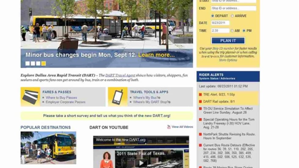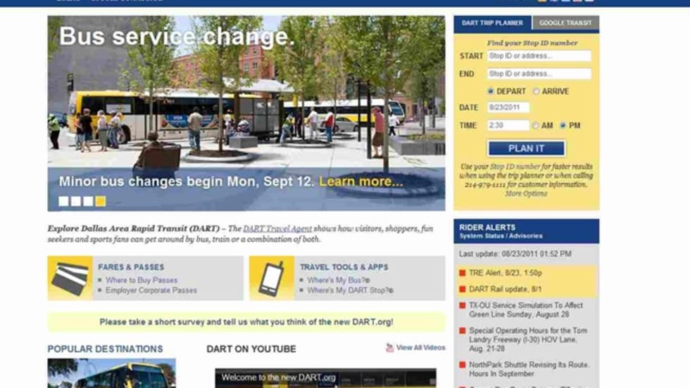 The redesigned site includes a simpler presentation of DART's online trip planner, Google trip planner, real-time arrival information, stop locator, rider alerts, service advisories and social media.