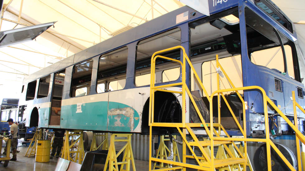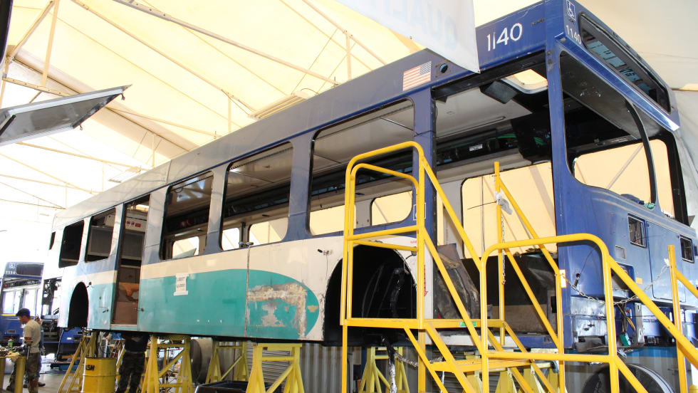 The buses are equipped with remanufactured engines and rebuilt transmissions as a cost effective method of quickly acquiring improved buses.
