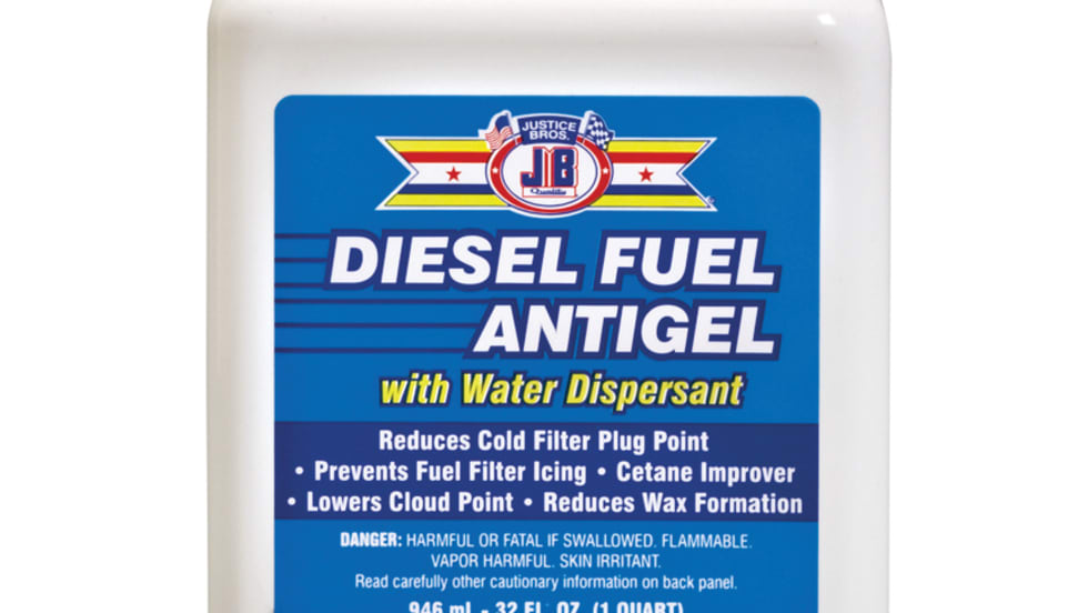 Justice Brothers’ Diesel Fuel Antigel quart bottle will treat up to 250 gallons of fuel in extremely cold temperatures and is approved for biodiesel as well.