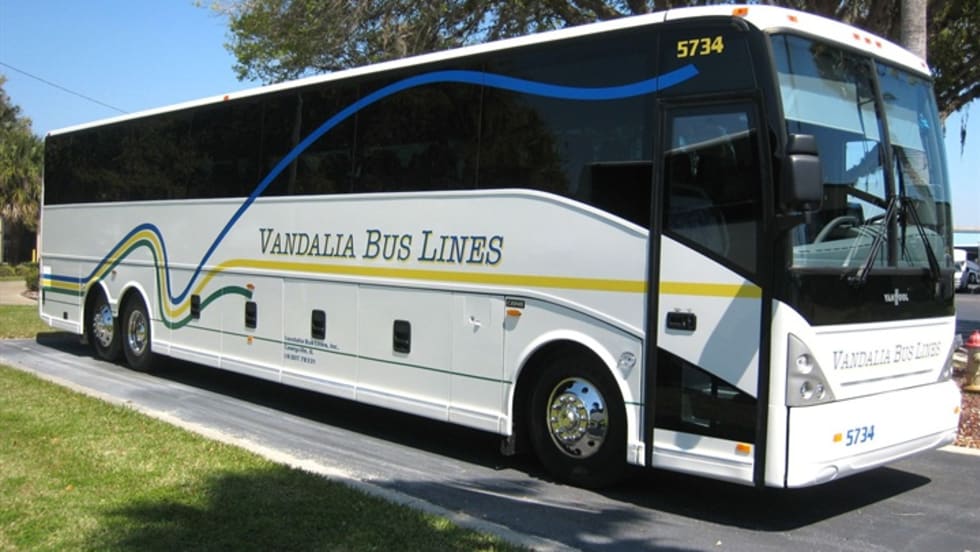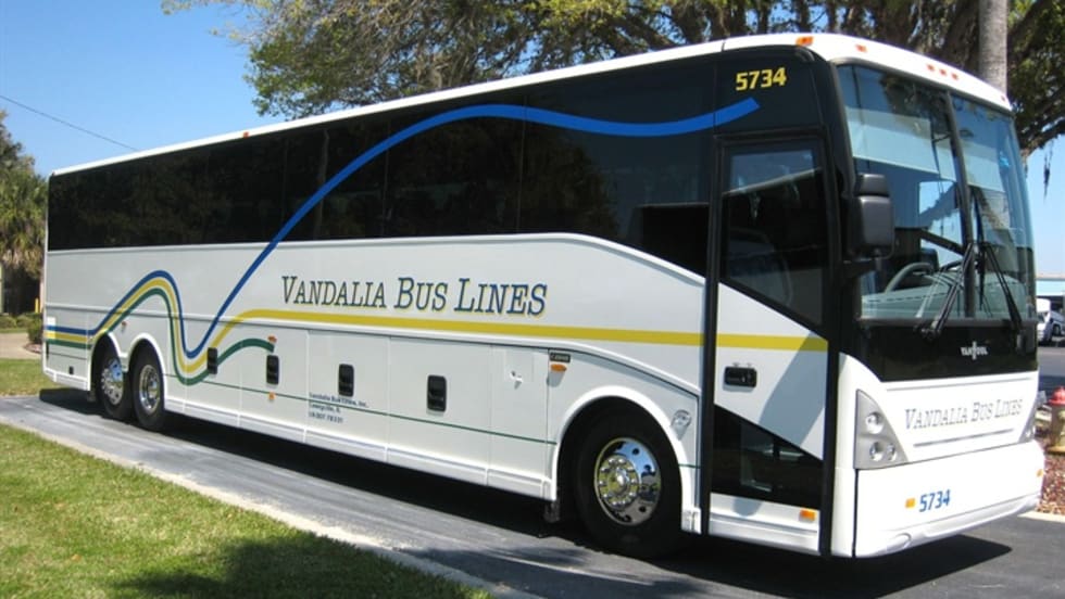 Vandalia Bus Lines’ new Van Hool T2145 and C2045 feature Allison transmissions, enclosed parcel racks, three-point seat belts, luxury entertainment systems with 15-inch flat screen monitors, Alcoa rims and 57-passenger seating.