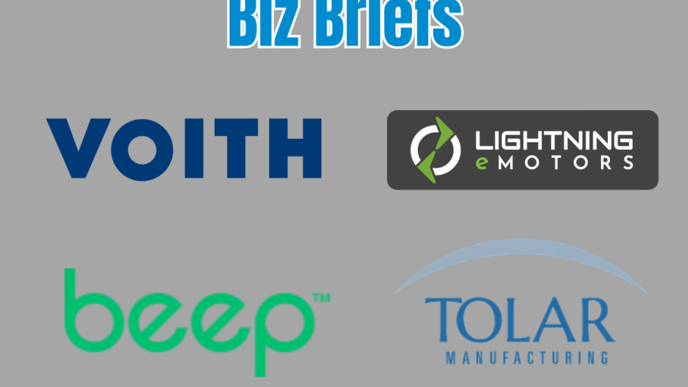 Get the latest from Tolar Manufacturing Company, Beep Inc., Lightning eMotors, and Voith Turbo.