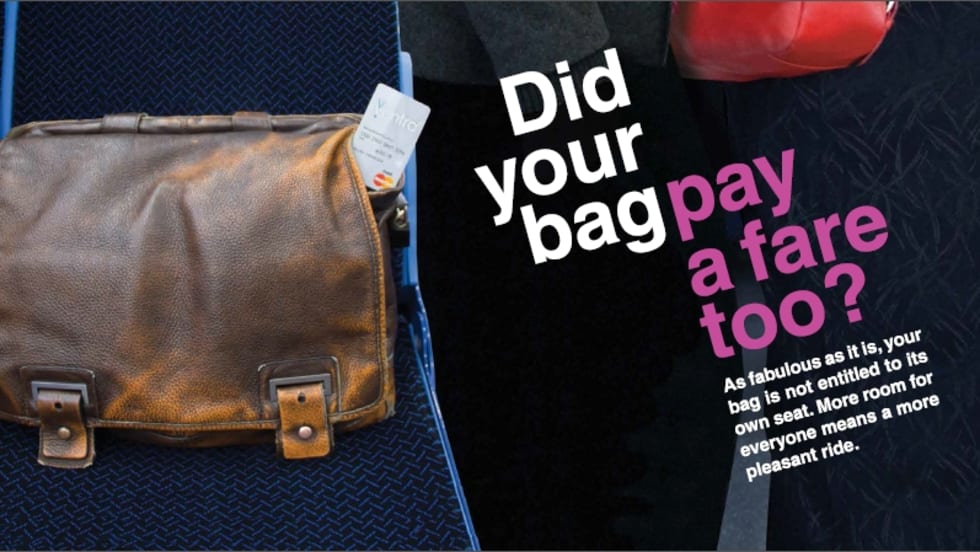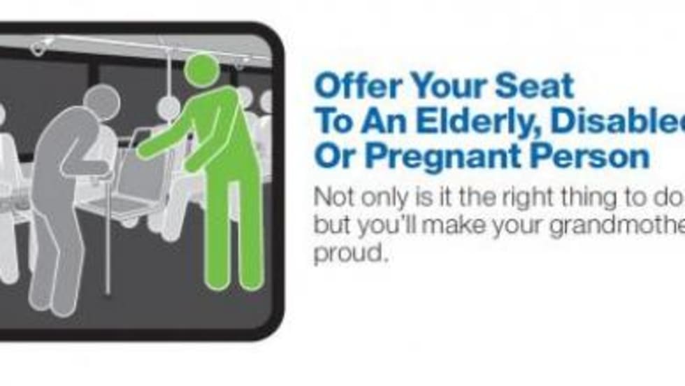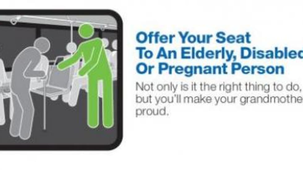 The campaign, featuring a series of messages to be placed on buses and trains, reflects some of the most commonly heard complaints from riders about the behaviors of fellow public transit passengers.