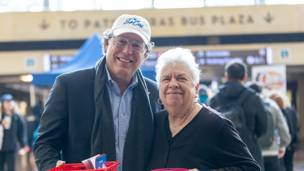 Members of Metrolink’s board of directors and local elected officials joined Metrolink CEO Darren Kettle and staff to surprise morning travelers with sweet treats and messages of affirmation at station pop-up events throughout the six-county system.