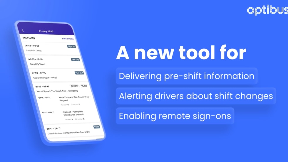 Integrated with Optibus Operations, the Driver App was designed in partnership with drivers, for drivers, offering a single space for digitizing and centralizing depot-driver communications and work information.